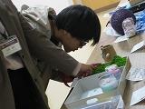 ランチョンマット作りでは、スポンジシートを好きな形に切ってインクをつけて布に押し、オリジナルランチョンマットを作りました。みんな集中しながら黙々と作業に取り組む姿が見られました。