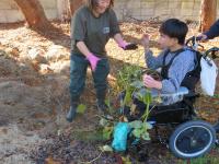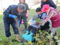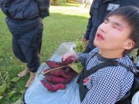 11月6日(木)幼・小学部と平新田町会の皆様とで、さつまいもの収穫を行いました。収穫活動には、PTA保護者の方も3名参加されました。町会の方に教えてもらいながら、「うんとこしょ、どっこいしょ」と声を出して、さつまいものつるを引っ張りました。また、土の匂いと感触を確かめながら、さつまいもを1本1本掘り起こしました。収穫後、さつまいもを使ってどんな料理を食べたいかという質問に「さつまいものシチューが食べたいです」「焼き芋にしたいです」など、笑顔いっぱいに答えていました。次回は11月18日(火)に平新田町会の皆様と一緒に「収穫祭」と題して、さつまいもの調理活動を行う予定です!