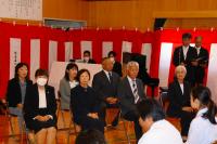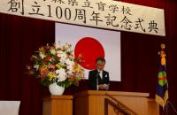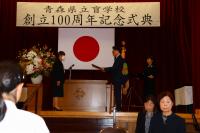 9月26日(金)、澄み渡る秋空のもと、青森県立盲学校の創立100周年記念式典が盛大に開催されました。当日は120名を超える関係者や来賓の皆様が一堂に会しました。式典では、青森県教育委員会教育委員の方からの祝辞に続き、本校校長、実行委員長(後援会会長)、高等部生徒会長がそれぞれ心温まる祝辞を述べました。また、本校発展に多大なご尽力をいただいた7名の方々に感謝状が贈呈され、その功績に対し深い敬意が表されました。後半には、「県盲100年のあゆみ」と題した映像が上映され、創立者である西蓮寺幸三郎氏の志を胸に刻み、先人達が築いてきた歴史に想いを馳せました。幼児児童生徒のメッセージと共に、矢田前校舎で学んだかつての県盲生達の写真が映し出されると、会場には感動の涙を拭う姿も見受けられました。式典の最後には、幼児児童生徒と教職員全員で「Joyful Joyful」を合唱し、祝福と感謝の想いを一つにしました。拍手に包まれる中、参加者全員による校歌斉唱が体育館に響き渡り、華やかに式典が締めくくられました。1925年、一人の青年が「青森に盲学校を」と立ち上がった日から100年。これからも青森県立盲学校は、この矢田前校舎で学ぶ1日1日を大切にしながら、その歩みを未来へとつないでいきます。