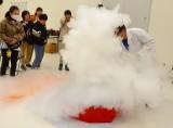 10月16日(木)、中・高等部野外活動で、三沢航空科学館に行きました。実験観察では、-196℃の「液体窒素」から発せられる冷気を体験したり、ゴムボールがガラスのように固くなる様子を、音を聞いて確かめたりしました。