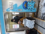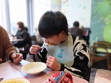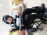 青森市民図書館では、職員の方が事前に準備してくださっていた「さわる絵本」にたくさん触れたり、AV・児童ライブラリーの視聴覚ブースで音楽を聴いたり、利用者カードを作って本を借りたりすることができました。また、昼食はファミリーレストランで好きな物を注文。途中、地震が発生するというアクシデントに見舞われましたが、館内アナウンスに耳を傾けて、先生の話をよく聞き、落ち着いて行動して、昼食もモリモリと食べました。