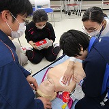 心肺蘇生法では、押し込む深さや強さ、リズムなどについて教えていただき、何度も練習させてもらいました。