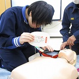AEDの使い方の学習では大きな声で指示を出すことやパッドの貼り方などを学びました。