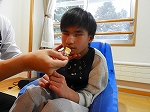 18日に実施した余暇活動の様子を紹介します。今回の余暇活動は10歳の誕生日のお祝いも兼ねており、最初にプレイルームでたくさん体を動かしてました。その後自室で、ハッピーバースデーの歌でお祝いし、苺のショートケーキを食べました。ケーキを食べる際にはとてもニコニコしながら食べており、何度も手を叩いて喜びを表現していました。