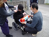 避難後は、スロープ訓練、オリロー訓練、消火器訓練をそれぞれ実施しました。